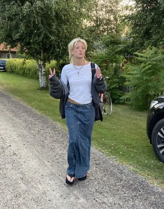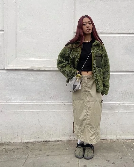 With the cargo and parachute pants blowing up this past spring and summer season, we will see more of this style in maxi skirts. We will also be seeing lots of denim this fall with maxi and midi skirts and with other heavier materials as well.