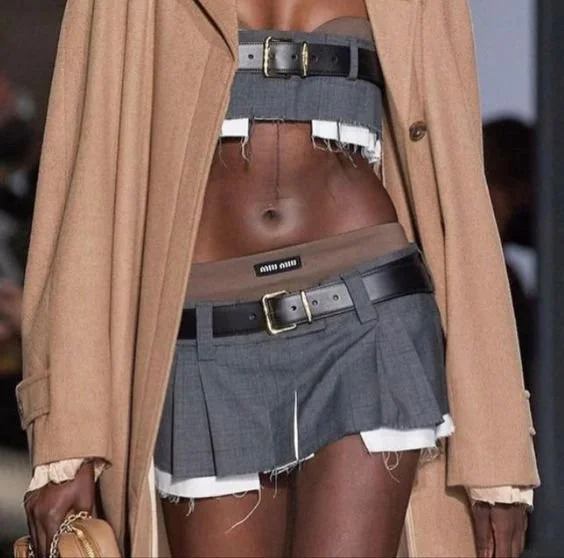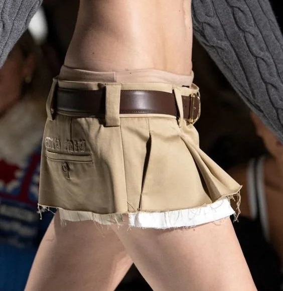 After fall of last year, Mui Mui debuted the micro mini skirt for their Spring 2022 line. It has had a huge impact on the streetwear style and has inspired many similar pieces. These mini skirts were inspired from office-wear materials and styles. Pleated skirts have been a thing of the fall, making this mini skirt, and others like it, perfect for the fall (while its still on the warmer side).